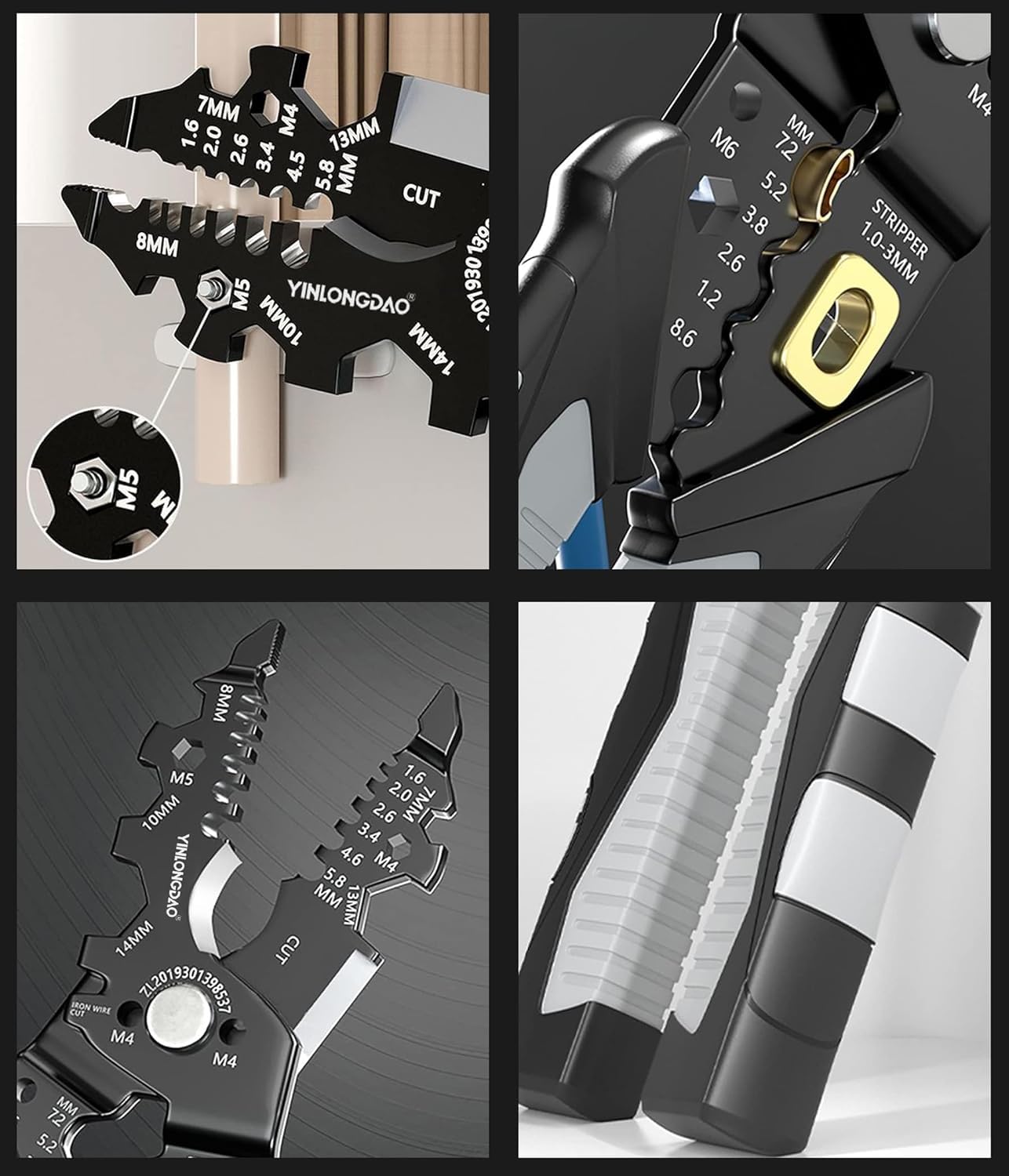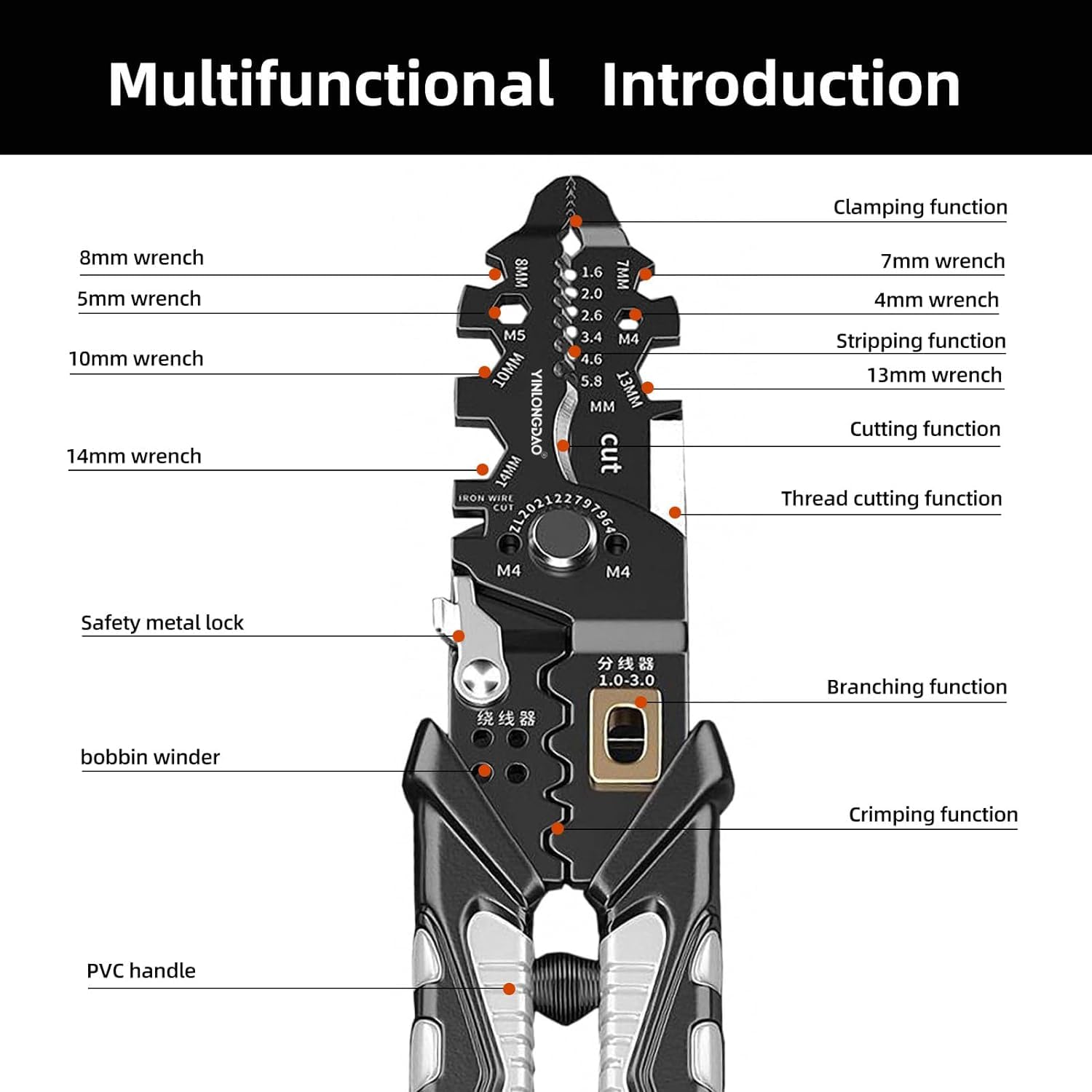 • Multifunctional Wire Stripper Tool: The latest 2023 model features 8-inch professional wire strippers and crimping tools, allowing for quick and easy insulation removal from copper, aluminum, and sheathed cores, as well as cutting bolts and insulated terminals.