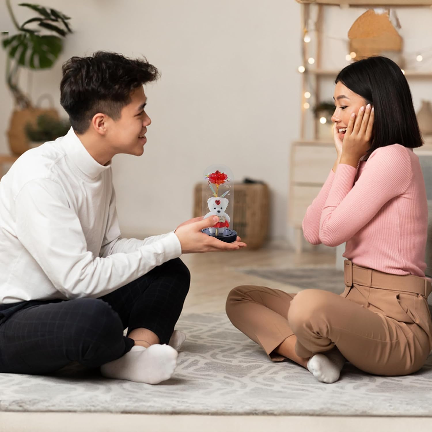Rose with Teddy Bear & LED Light in Borosilicate Glass Dome – Romantic Gift for Wife, Girlfriend, Mom | Birthday, Anniversary, Mother’s Day | Mood Lighting Decoration Rose with Teddy Bear & LED Light in Borosilicate Glass Dome – Romantic Gift for Wife, Girlfriend, Mom | Birthday, Anniversary, Mother’s Day | Mood Lighting Decoration